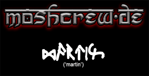 Wir hatten es ja schon lange vor, aber es ist nie was draus geworden. Deswegen mach ich das Ganze jetzt mal amtlich: Wir wollen T-Shirts mit dem moshcrew.de-Logo drucken lassen und eventuell (wenn das dadurch nicht zu teuer wird, auch für jeden einen Namen). Hier könnt ihr euch mal den ersten Entwurf dazu anschauen und uns mitteilen, was euch daran gefällt und was nicht. Wenn Ihr ein T-Shirt haben wollt, Anregungen / Kritik habt, dann benutzt einfach das Kontaktformular